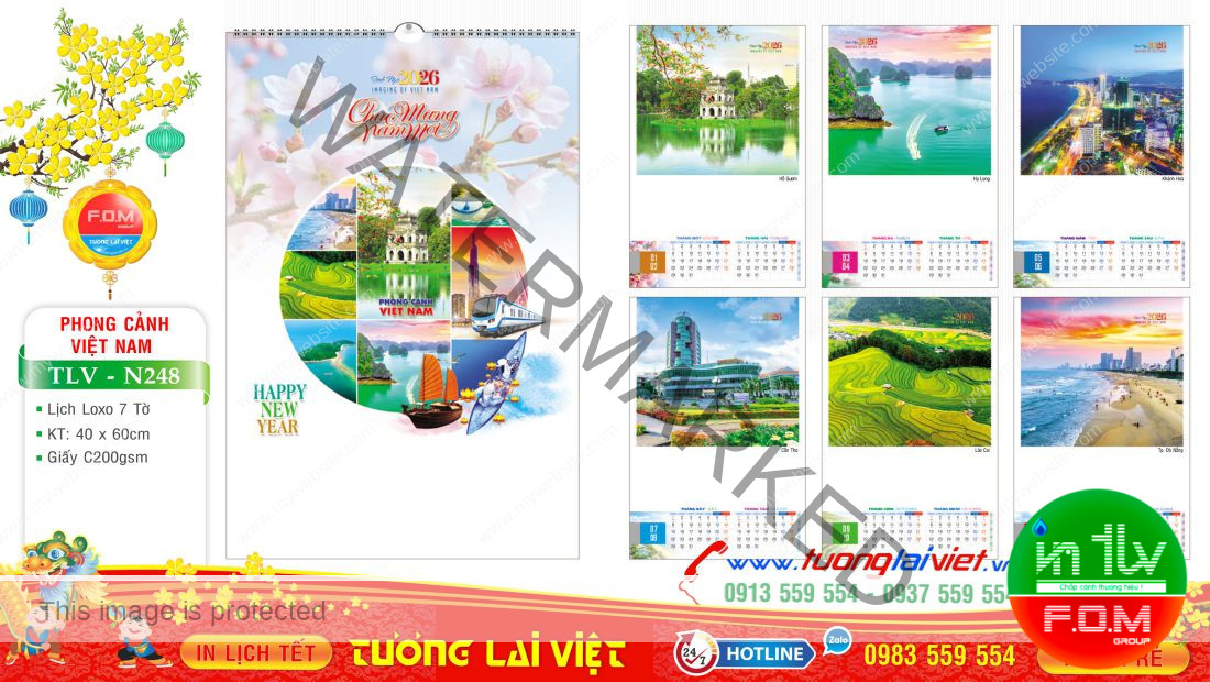 - Lịch Lò Xo 7 Tờ Phong Cảnh Việt Nam được nhiều đơn vị, cơ sở chọn In Lịch Tết làm quà tặng khách hàng.