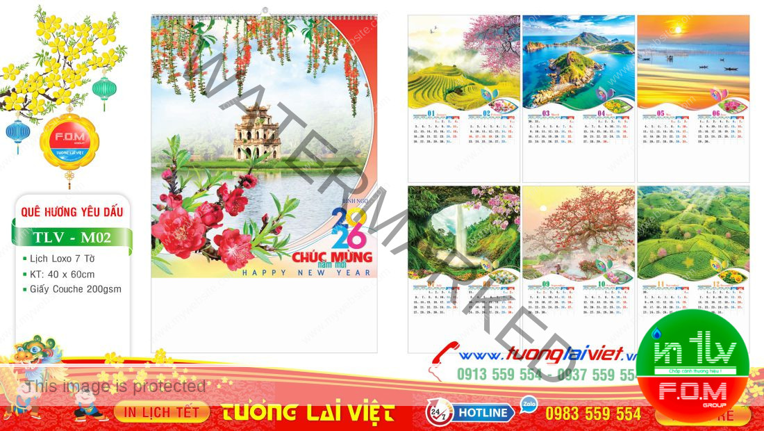 Mẫu lịch 7 tờ năm nay được In TLV thiết kế phong phú về chủ đề với những hình ảnh như: Phong thuỷ tài lộc, Cây thuốc và Sức khoẻ, Chữ thư pháp, Hoa sen, Phong cảnh, Du lịch, Bon sai, Quà tặng cuộc sống, Lời hay ý đẹp, Danh ngôn cuộc sống, Ca dao tục ngữ, Ý nghĩa Cuộc Sống, Thuận buồm xuôi gió, Phúc lộc thọ, Phật di lặc, Logistics, …
