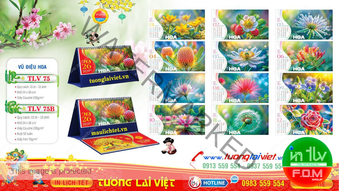 In Lịch Tết TLV gởi đến quý khách hàng Mẫu Lịch Để Bàn 13 Tờ và Bảng báo giá In Lịch Để Bàn, Quý khách dễ dàng lựa chọn theo từng số lượng in ấn lịch tết phù hợp theo nhu cầu của doanh nghiệp.